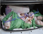 العملية التي تدخل في إطار حماية المستهلك و محاربة كل أشكال الغش التجاري، تمت على إثر مراقبة روتينية لسيارة أجرة وسط مدينة ميلة، حيث عثر أفراد الشرطة بالصندوق الخلفي للسيارة، على 83 كلغ من قطع الدجاج، إضافة إلى 2 كيلوغرام من أحشاء الدجاج المشكوك في سلامتها.